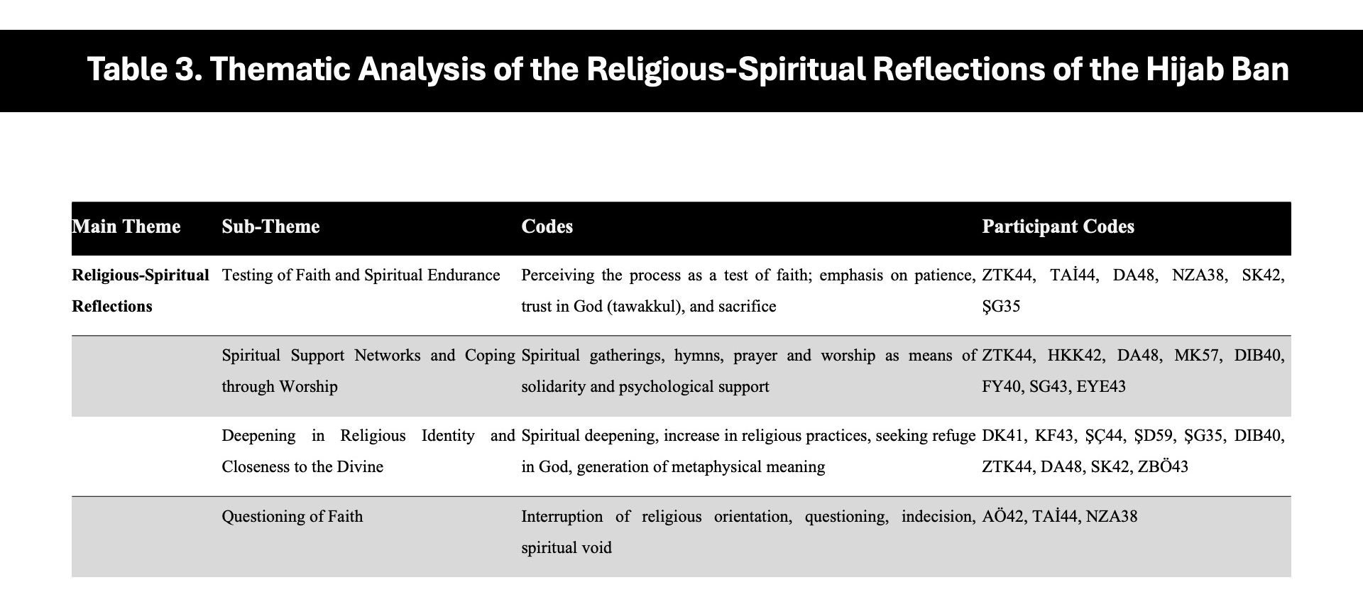 Table 3. Thematic Analysis of the Religious-Spiritual Reflections of the Hijab Ban