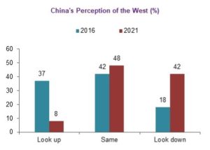 Chinese perception of the West has also worsened. The fact that China has seen very low numbers of COVID-19 cases until recently has led to a strong sense of security at home and of disarray regarding the West. Various surveys point to a clear worsening of China’s impression of the West, when compared to 2016 (Figure 3).