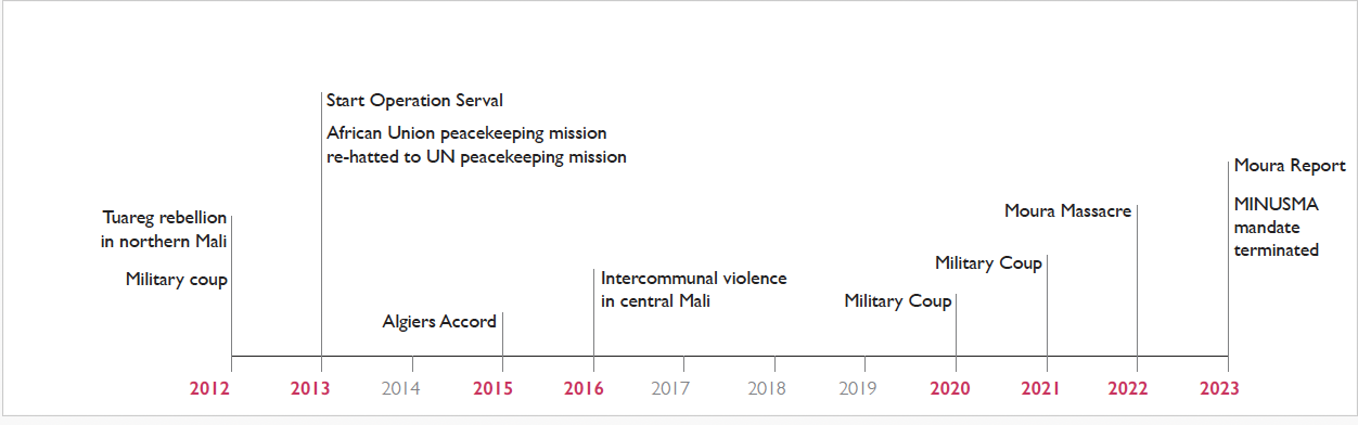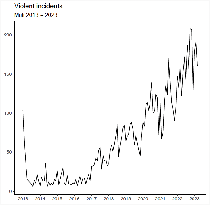 Figure 2: Violent incidents in Mali from 2013-2023. Source: Armed Conflict and Location Dataset (ACLED)