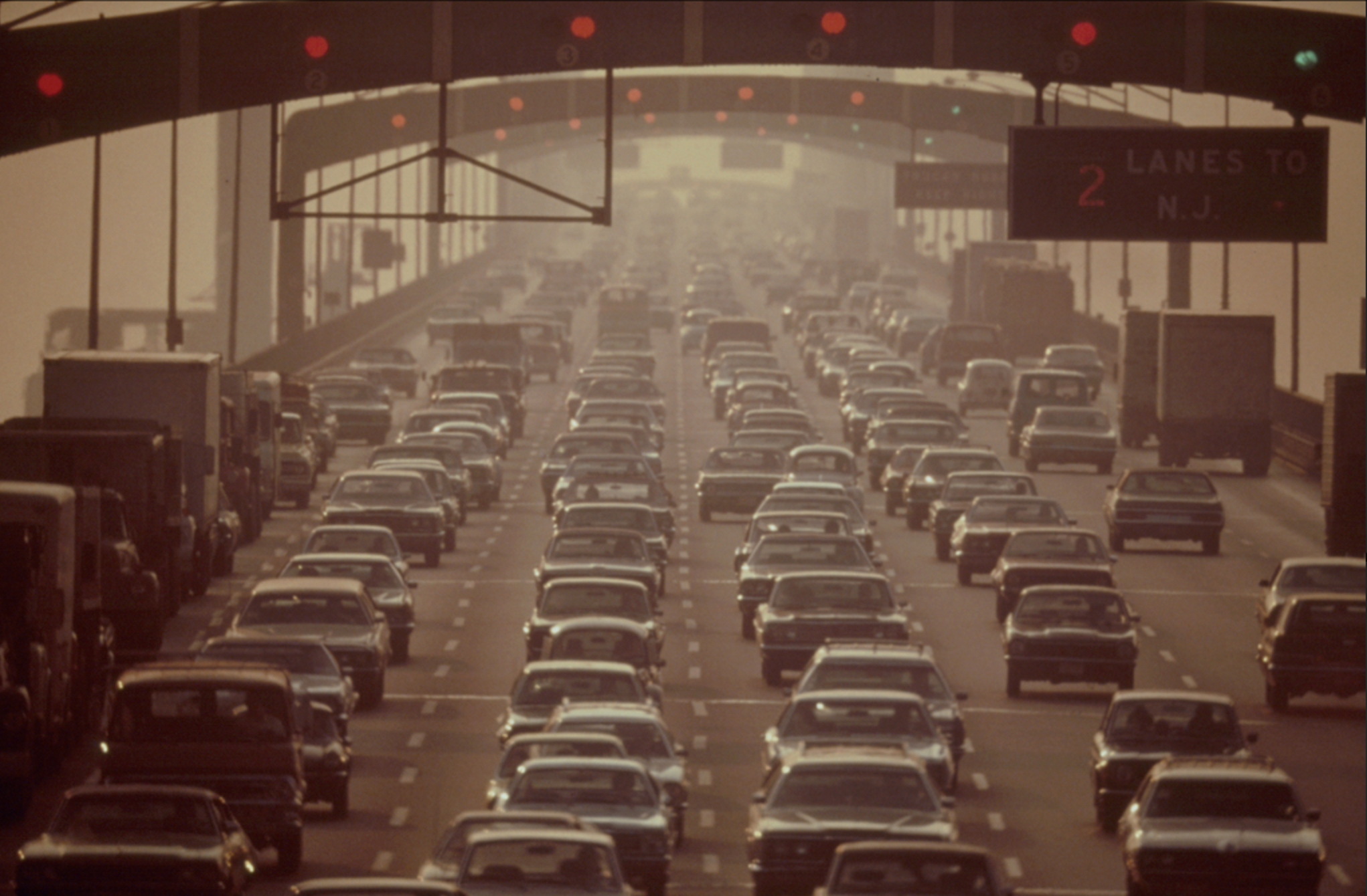 Image Credits: “Superusers Burn the Most Gasoline,” Coltura and “Walt Whitman Bridge crosses the Delaware River at South Philadelphia, leads to New Jersey Suburbs, August 1973,” Documerica/U.S. Environmental Protection Agency Public Domain