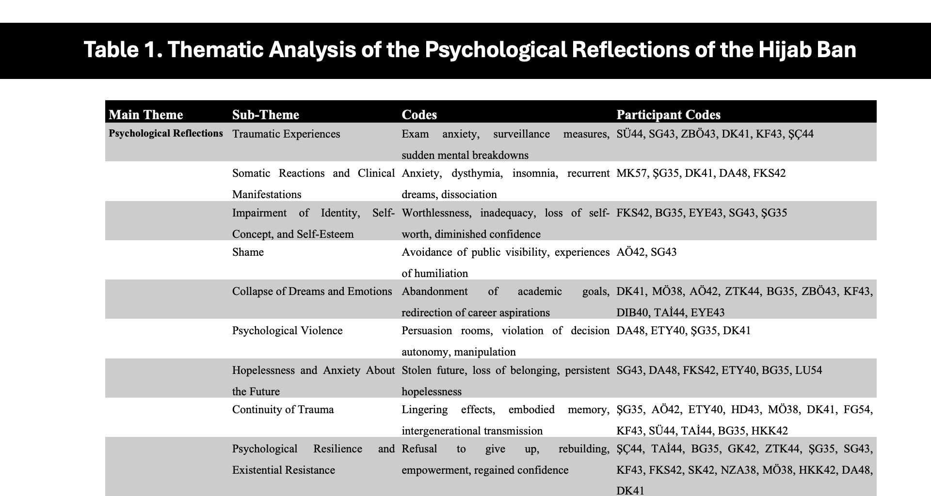 Table 1. Thematic Analysis of the Psychological Reflections of the Hijab Ban