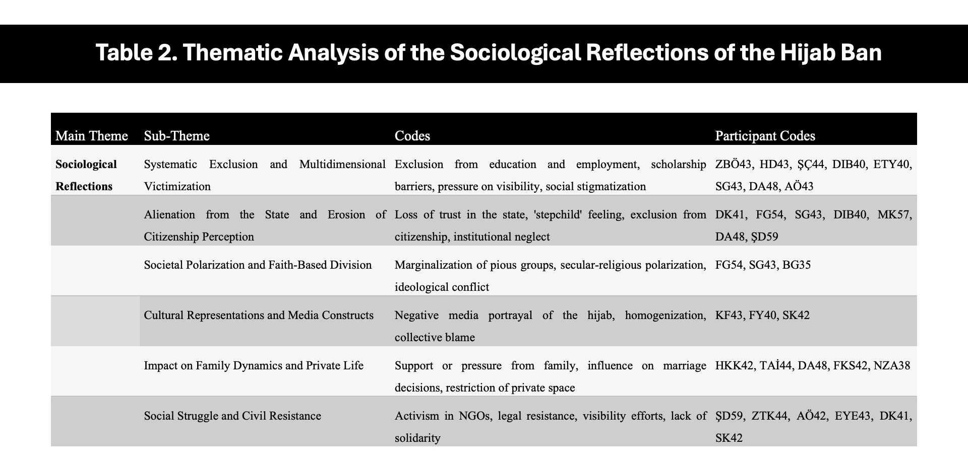 Table 2. Thematic Analysis of the Sociological Reflections of the Hijab Ban