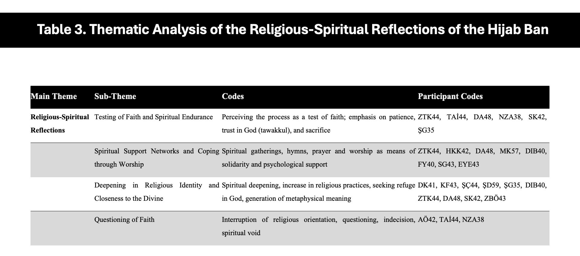 Table 3. Thematic Analysis of the Religious-Spiritual Reflections of the Hijab Ban